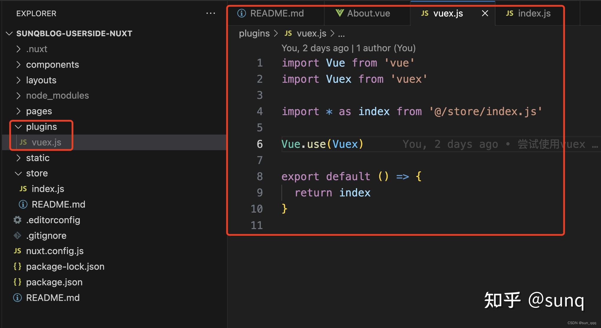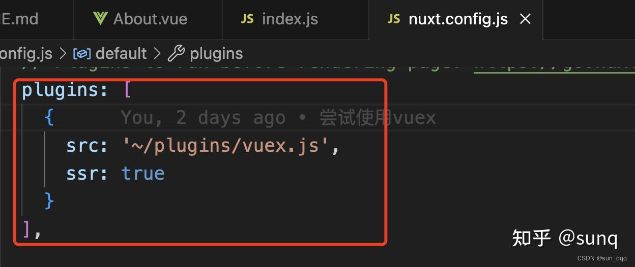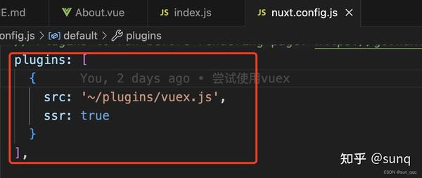在plugins文件夹下,放一个vuex.js文件,并在nuxt.config.js中引入。
