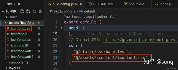 只需要将iconfont的资源文件放在assets文件夹下,然后在nuxt.config.js的css属性写上地址即可